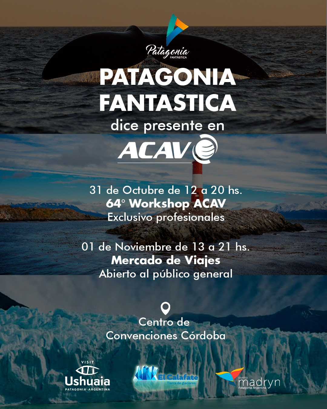 La participación de Puerto Madryn se desarrollará a lo largo de dos jornadas. El jueves 31 de octubre se llevará a cabo el 64° Workshop ACAV, de 12 a 20 horas, una instancia destinada exclusivamente a profesionales del turismo, operadores y agentes de viajes. En tanto, el viernes 1 de noviembre se realizará el Mercado de Viajes, de 13 a 21 horas, un espacio abierto al público general donde los visitantes podrán conocer de primera mano las propuestas turísticas de la región y planificar sus próximas vacaciones en la Patagonia.
