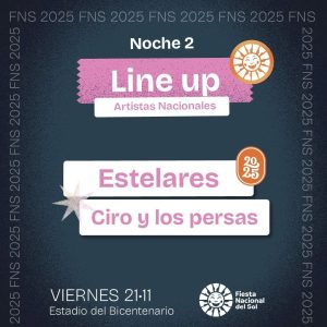 La edición 2025 de la FSN tendrá una propuesta musical muy variada con más de 100 artistas locales que formarán parte de los escenarios Energético, Folclore y Melódico, ubicados dentro de la feria, además del escenario mayor del Estadio del Bicentenario, con artistas nacionales que serán los encargados de dar cierre a cada una de las noches.